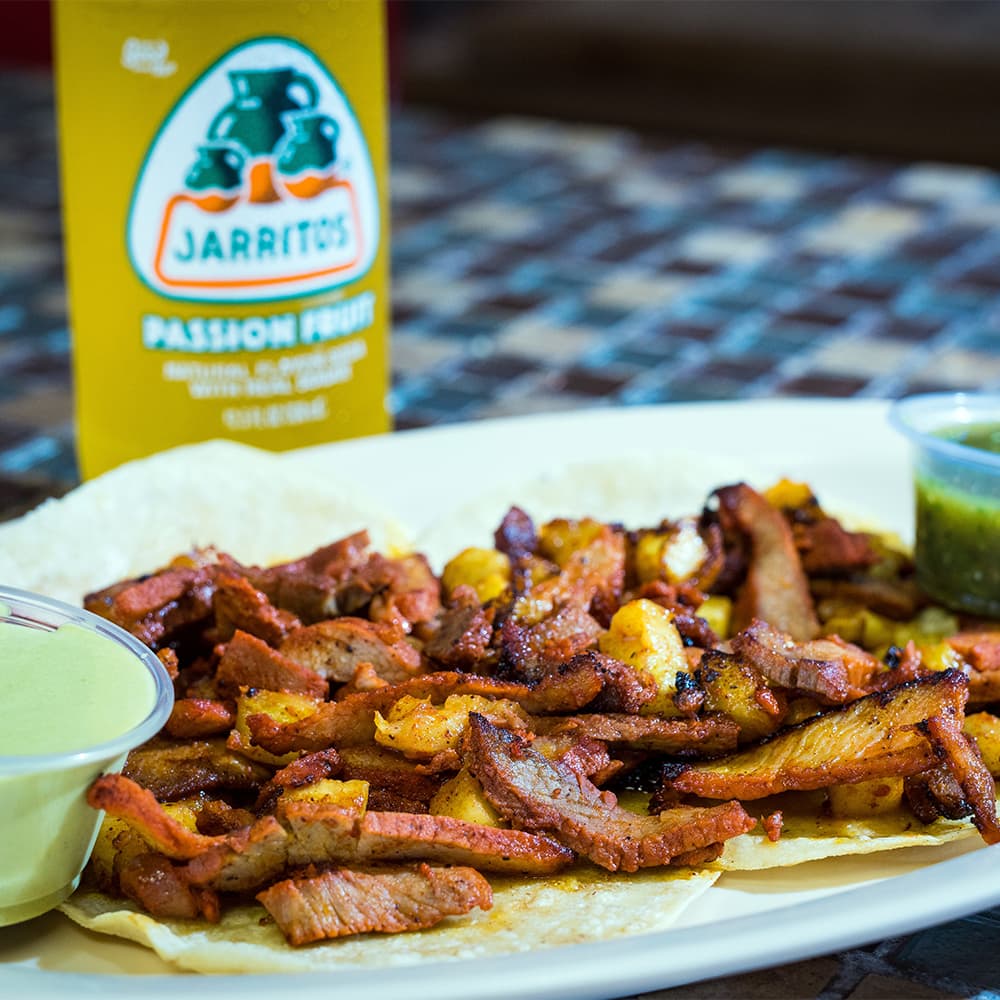 Grilled chicken breast topped with three types of cheese inside flour tortillas served with pico de gallo sauce and sour cream